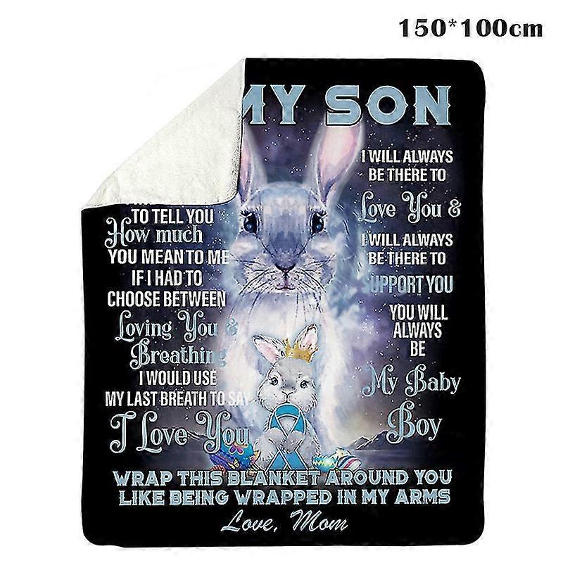 To My Son From Mom Rabbit Vertical Poster Blanket Flannel Carpet Digital Printing Rug Lightweight @BUGU