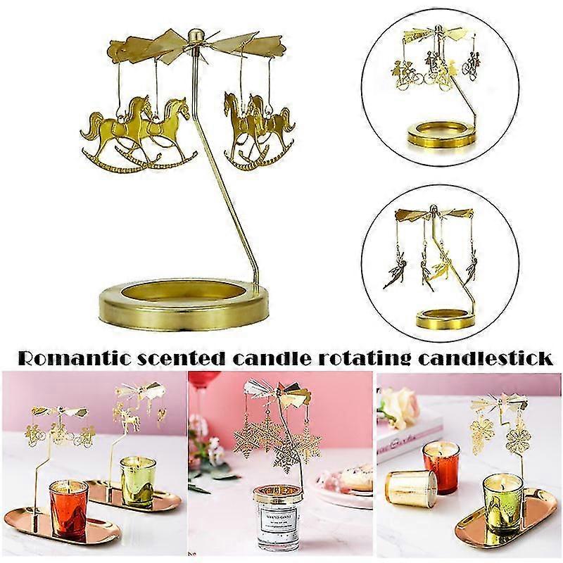 Spinning Candlestick Rotary Tea Light Candle Holder Carousel Metal Home Decors @BUGU