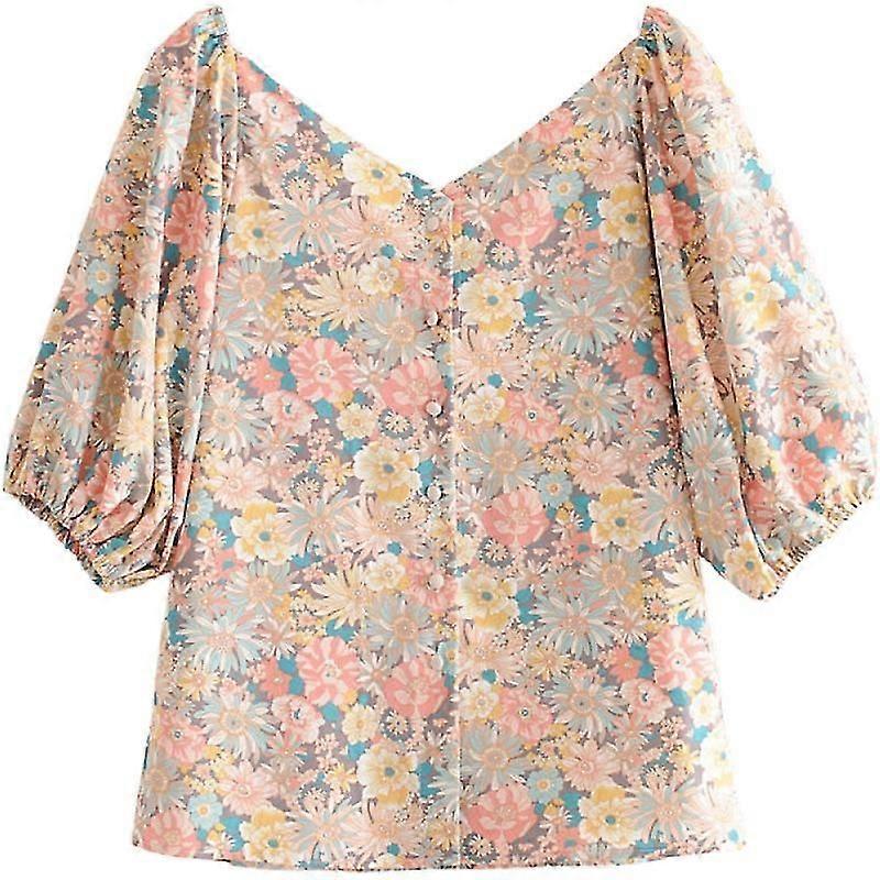Loose V-neck Lantern Mid-sleeve Short Shirt @BUGU