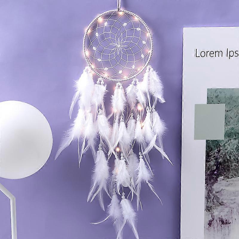 Dww-(Violet) Feather Dreamcatcher, Dsaren Handmade Light-Up Dreamcatcher Mobile, Retro Romantic Dreamcatcher Decor for Girls, Decorative Mobile for Ho