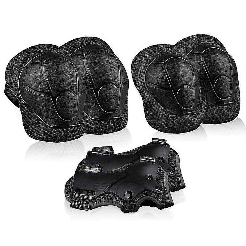 Dww-Knee Pads for Children, Black, One Size, 1 Set of Knee and Elbow Pads for Children, Knee Pads for Girls, Wrist Pads for Boys, 3 in 1 Set for Ice S