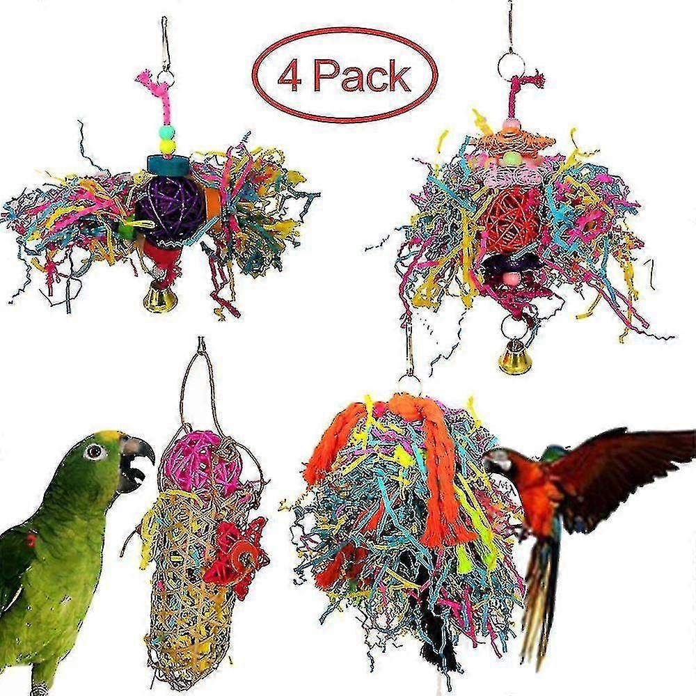 4 Pack/setparrot Toys Canary Toys Bird Chewing Toys Parrot Cage Shredder Toy Foraging Hanging Toy @BUGU