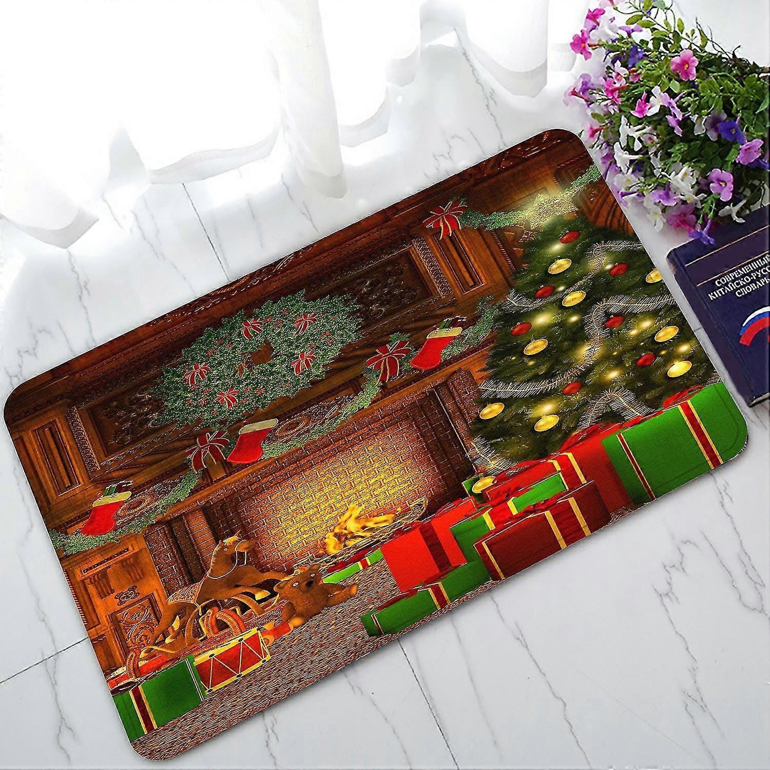 Vintage Christmas Tree Gift Box Rocking Horse Doormat Entrance Rug Area Rug Floor Mat ecor 45x75 Cm @BUGU