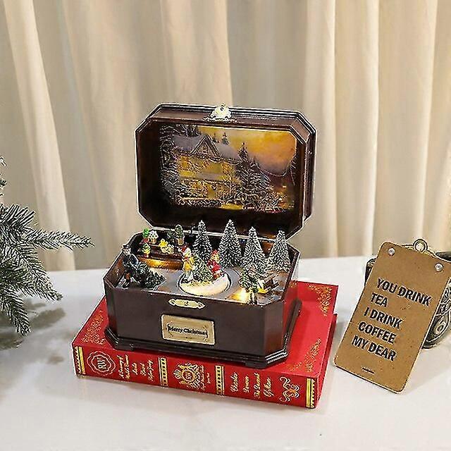 Christmas Music Box Present Santa Clause Electric Music Box With Flashing Color Music Ornaments Birthday Present For Lover @BUGU