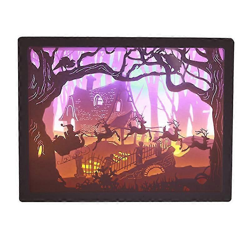 Christmas Forest Deer Papercut Light Box 3d Paper Carving Shadow L @BUGU
