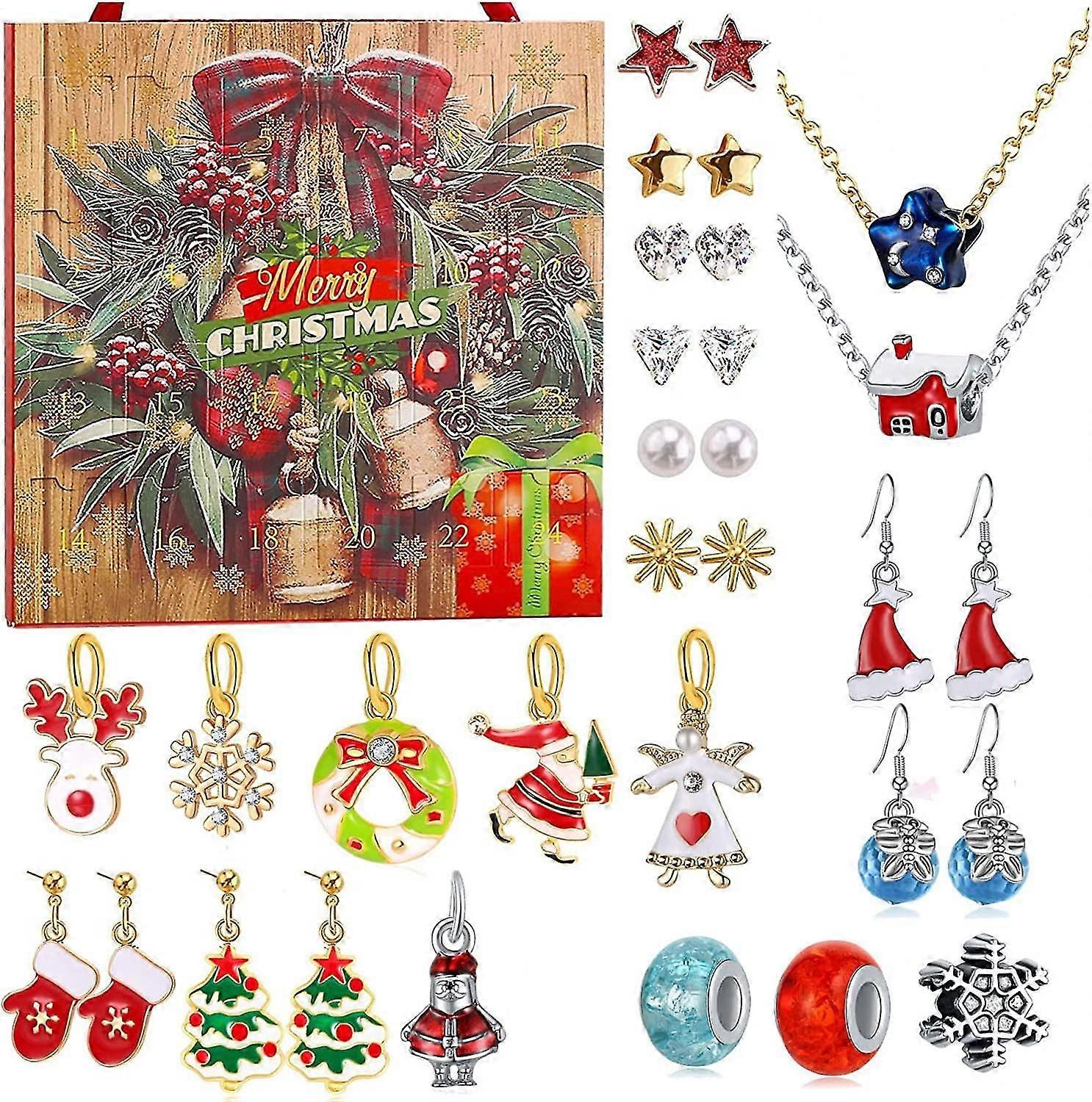 Christmas Countdown Calendar Necklace Blind Box Earrings Ornaments Giftortable Gift Box Se @BUGU