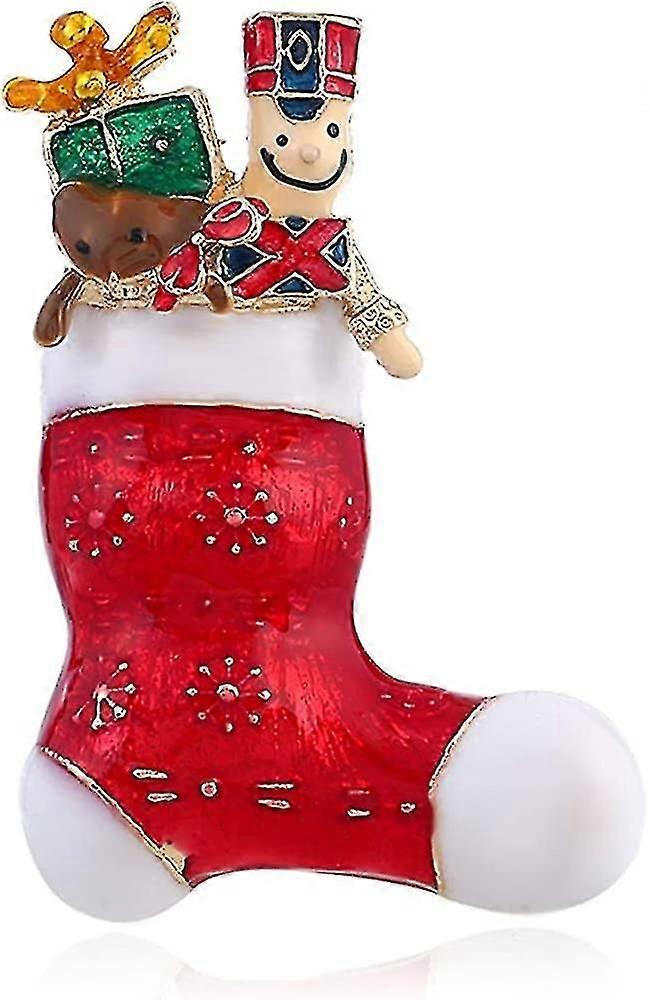 Red Santa Stocking Sock Gift Box Christmas Brooches Pin For Women Girls Men Alloy Gold Plated Cute Snowflake Brooch Dress Accessories Win @BUGU