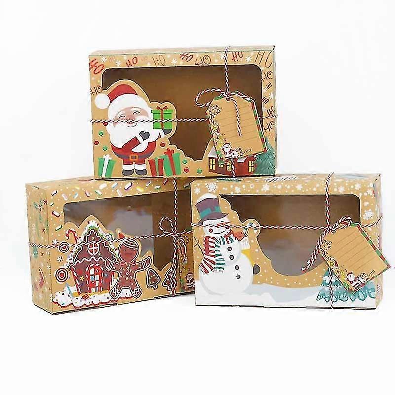 3pcs Mix Christmas Cookie Gift Boxes For Christmas Party Supplies Christmas Kraft Paper Gift Food Bakery Boxes With @BUGU