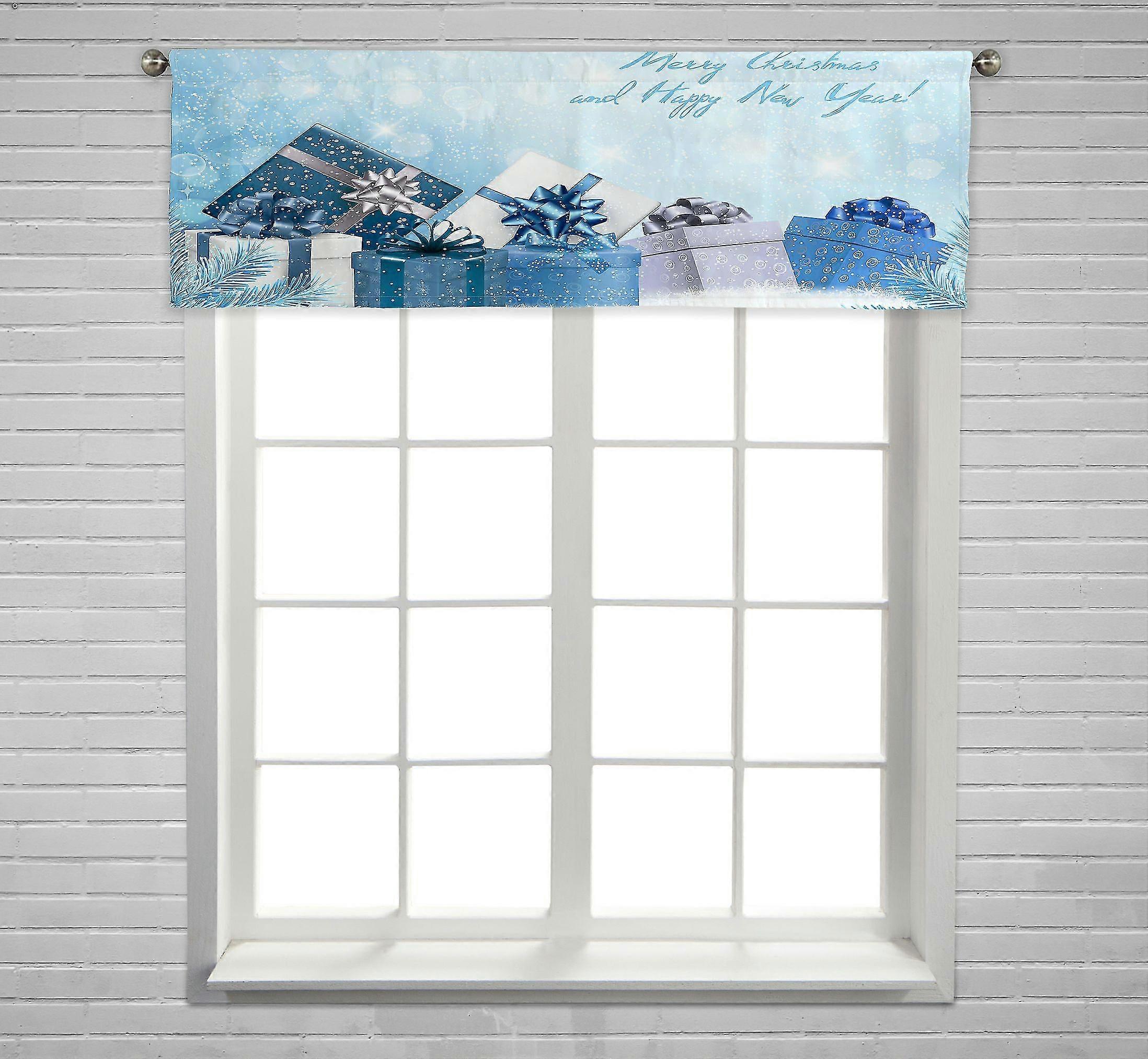 Christmas Blue Gift Boxes And Snowflakes Window Curtain Valance Rod Po @BUGU