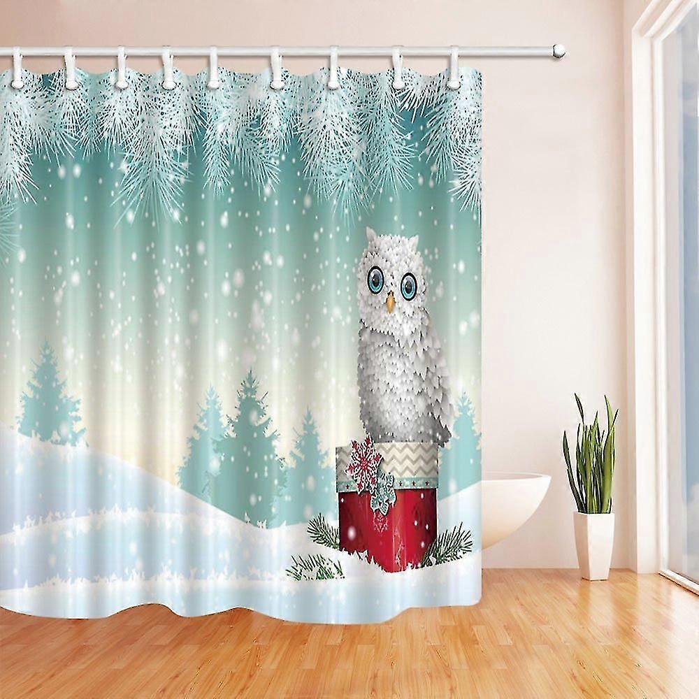 Christmas Festivalfor Cartoon Owl On Gift Box In Snow Polyester Fabric Bathroom Shower Curtain 160x180 @BUGU