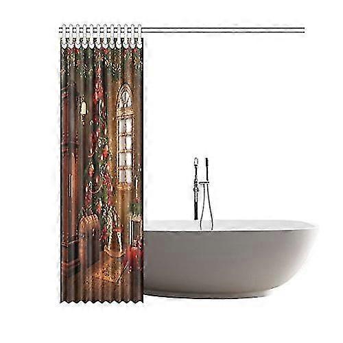 Christmas Tree Stockings Candles Gift Boxes Spirit In The House With Lights Polyester Fabric Shower Curtain Set With Hooks 150x180 @BUGU