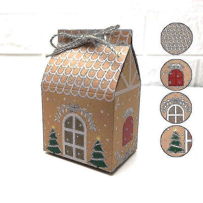 10/50/100pcs House Shape Kraft Candy Box avor Gift Boxes With Ropes Merry Christmas Gu @BUGU