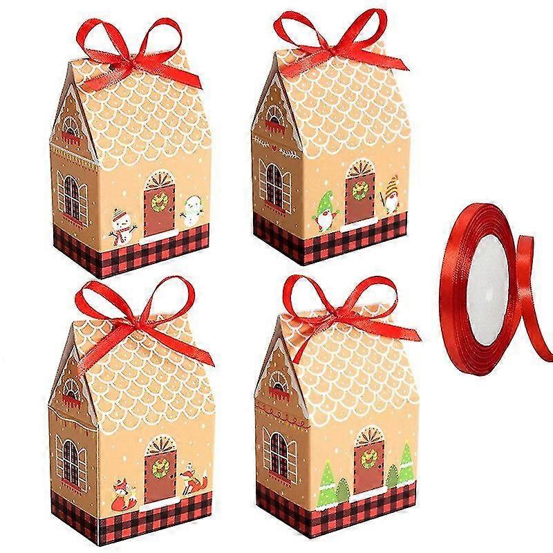24pcs Christmas House Shape Gift Boxes Candy Cookie Package Kraft Paper Box Bag With Rope Fors New Year Party S @BUGU