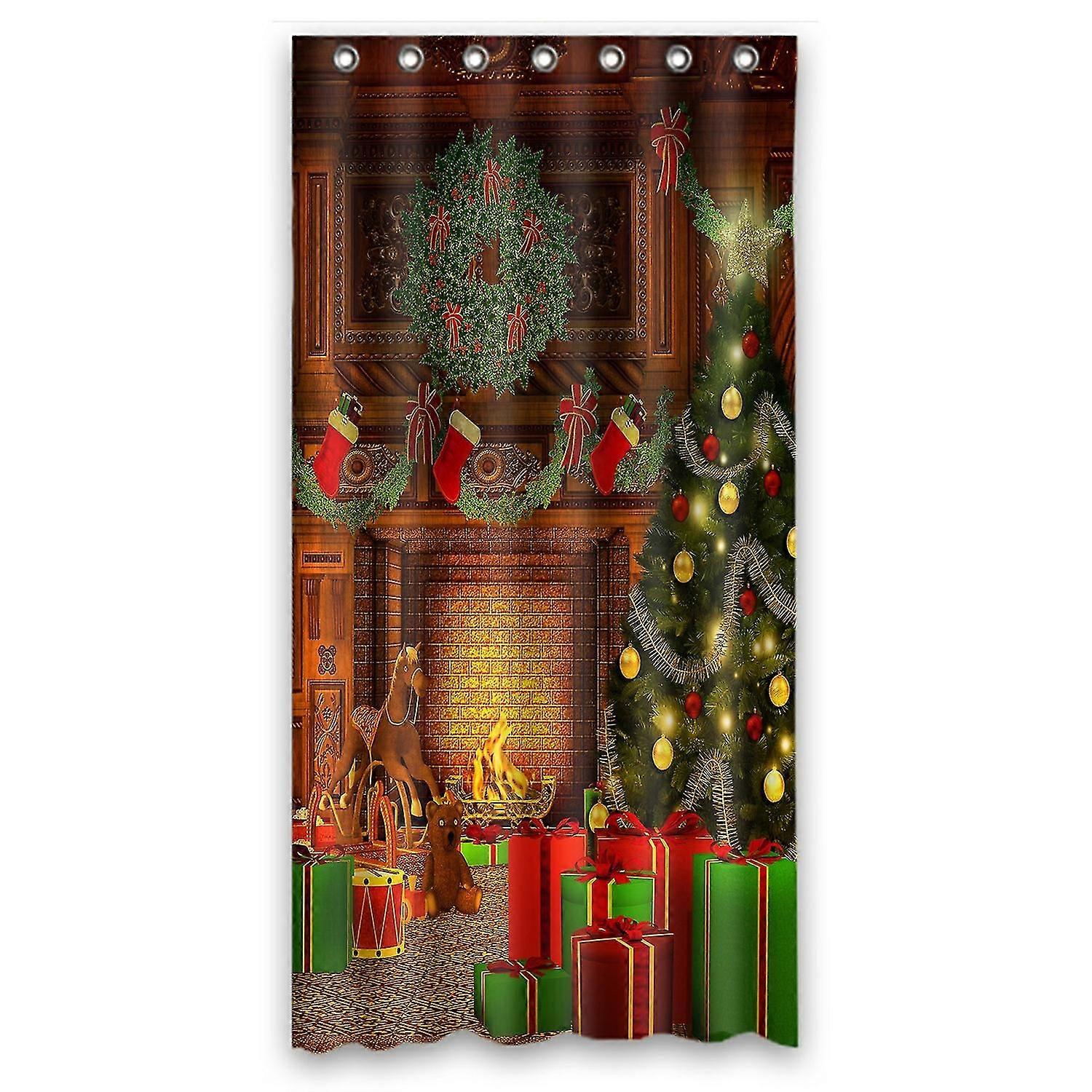 Vintage Christmas Tree Gift Box Rocking Horse Waterproof Polyester Shower Curtain And Hooks 90x180 Cm @BUGU