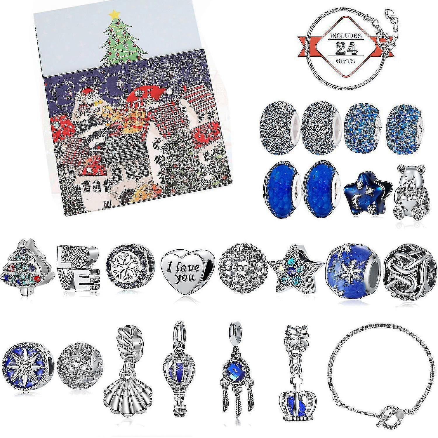Blue Department Christmas Countdown Calendar Gift Box Set Diy Beaded Bracelet Dream Starry Bracelet Gift @BUGU