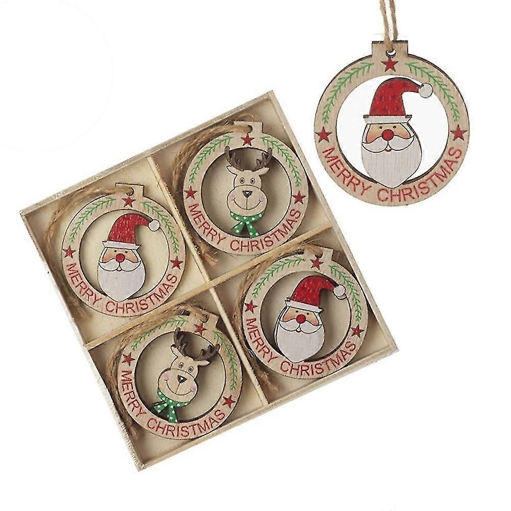 8 Wooden Merry Christmas Tree Decorations | Novelty Boxed Hanging Baubles x 8 @BUGU