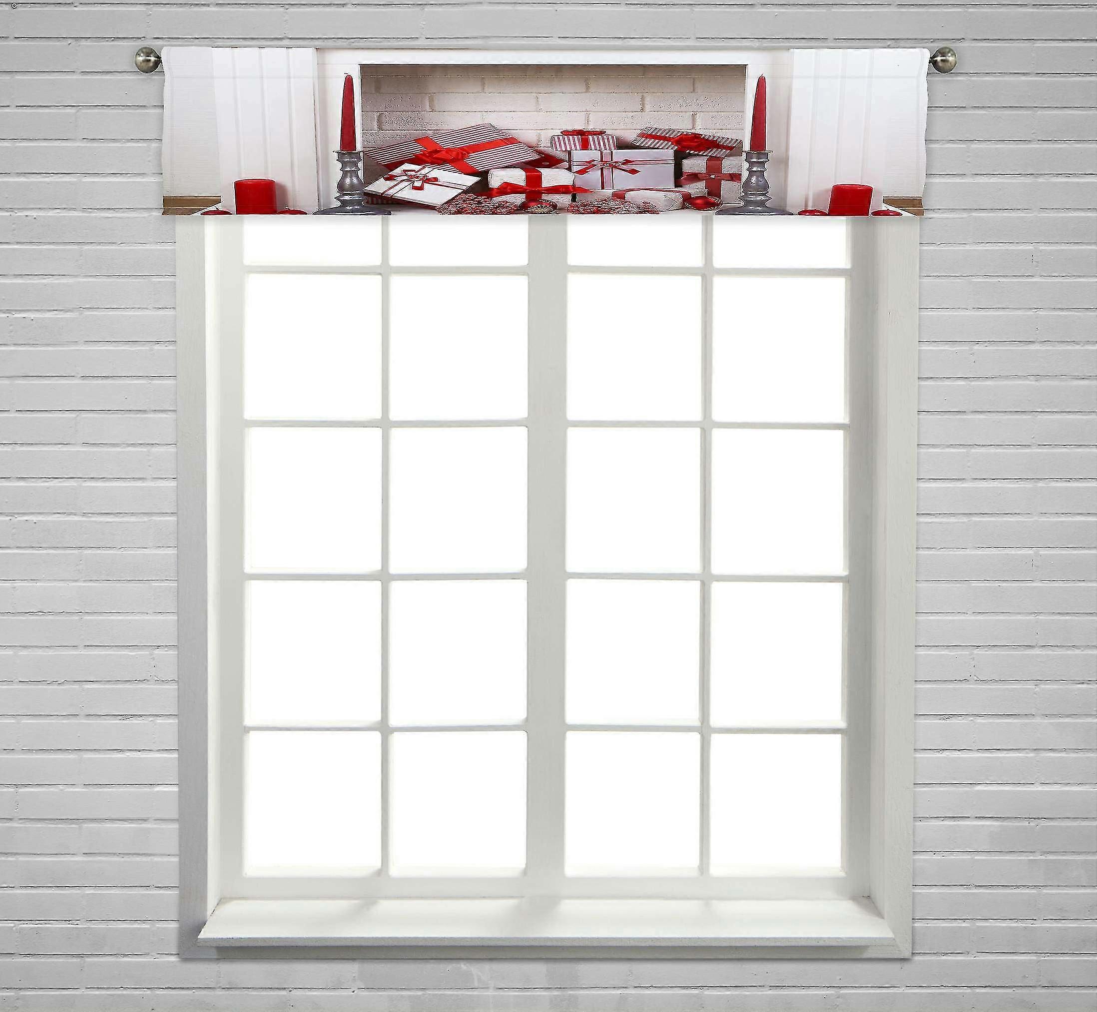 Fireplace Christmas Boxes Candles Wooden Floor Window Curtain Valance Rod Pocket 30x130 Cm @BUGU