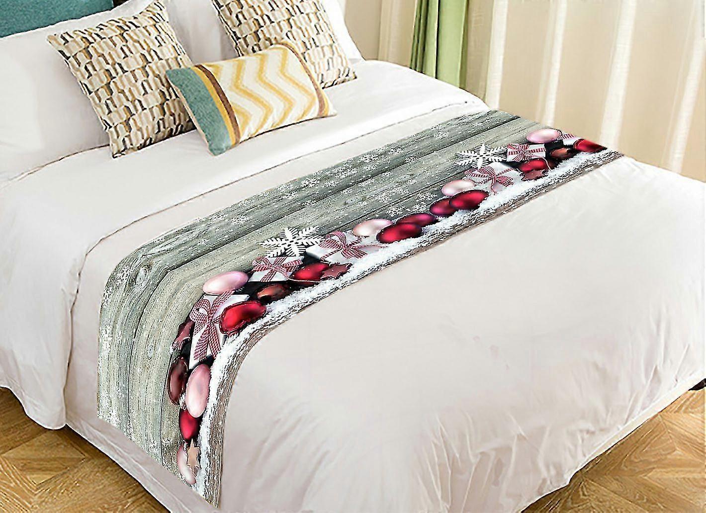 Christmas Colorful Baubles Gift Boxes Snow Bed Runner Bedding Scarf Bed Decorat @BUGU