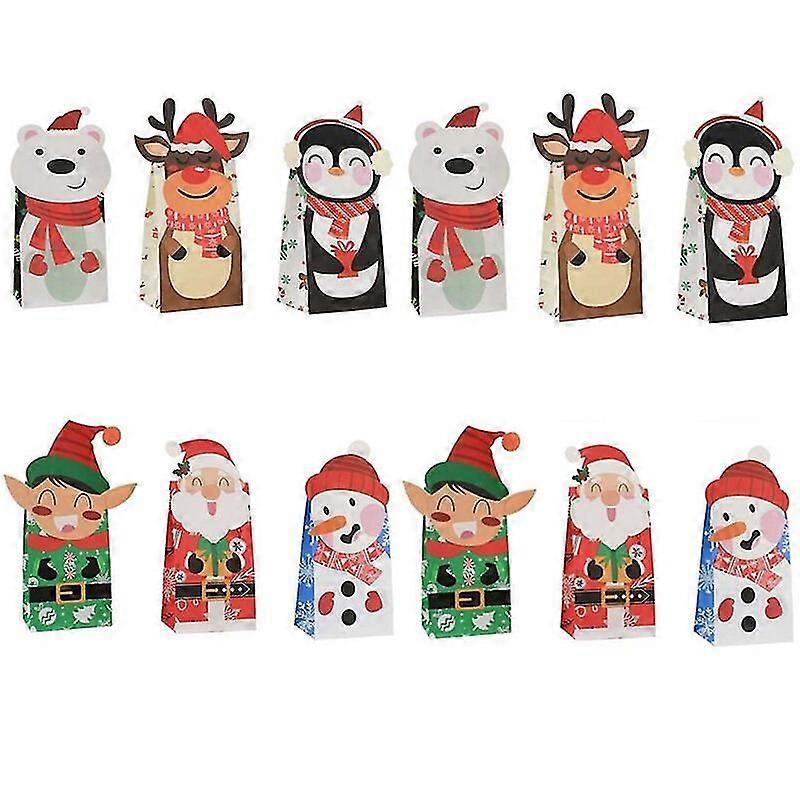6/12pcs Kraft Paper Bags Gift Bags Food Cookie Packaging Bags Boxes Merry Christmass New Year ecoration @BUGU