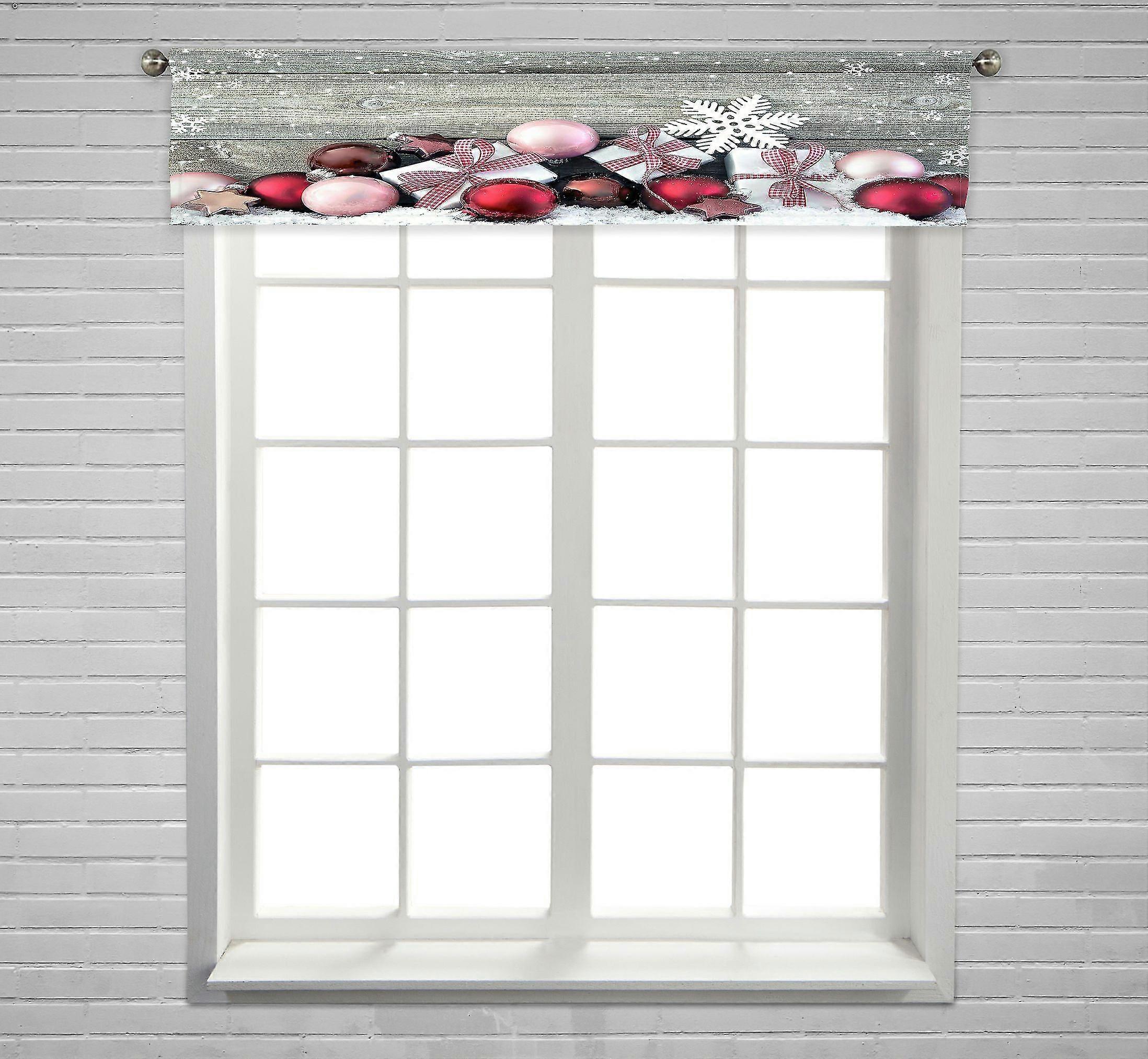 Christmas Colorful Baubles Gift Boxes Snow Window Curtain Valance Rod Po @BUGU