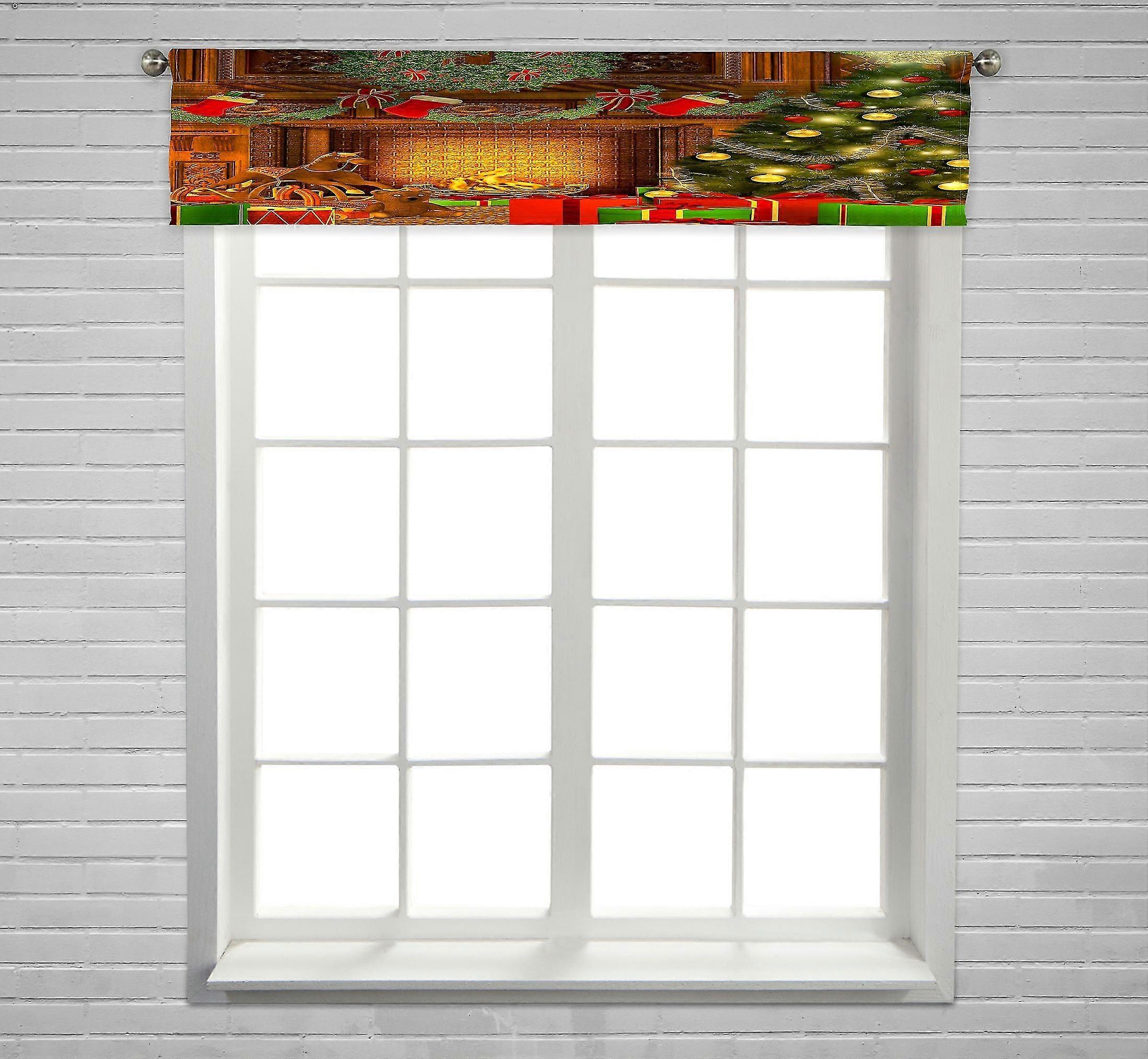 Vintage Christmas Tree Gift Box Rocking Horse Window Curtain Valance Rod Po @BUGU