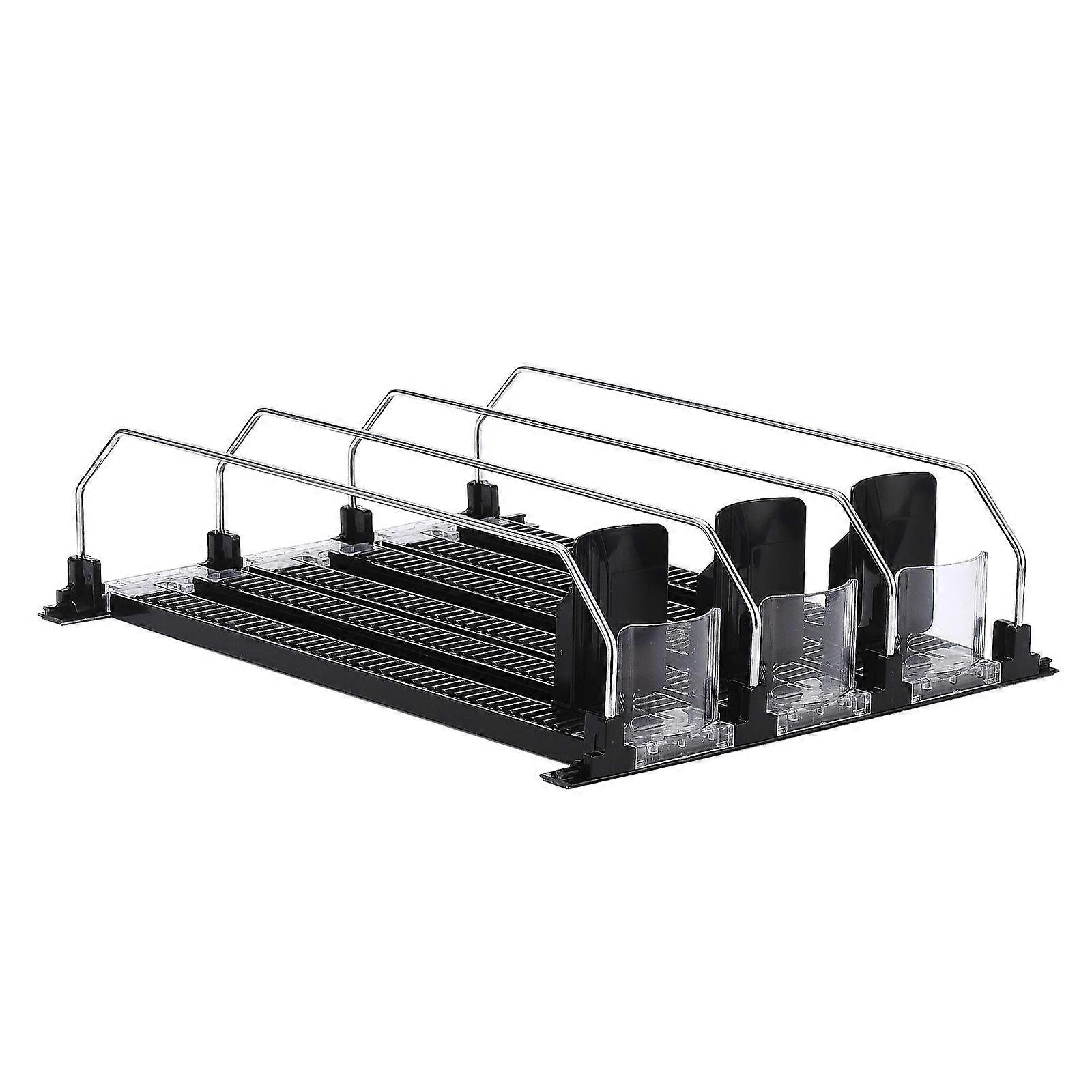 Features 1. Size: 31 cm/ 12.2 inch, 38 cm/14.96 inch. We provide 3push rod rails, 5push rod rails, 6push rod rails. You can choose the most suitable can organizer according to the size of the refrigerator or cabinet in your home. 2. Unique features: The refrigerator can storage is composed of spring push rods, taxiway rollers and galvanized iron dividers. The refrigerator soda can holder has a slide-out feature, which means you don't have to reach for beverages from deep inside the frigde with difficulty. When the first beverage placed on the fridge soda dispenser is removed, the beverages behind will automatically be pushed forward for easy access. 3. Versatile: This refrigerator drink dispenser can be used to push a variety of bottled and canned beverages such as cola, soda, beer, sparkling wine and more. The refrigerator soda holder can be widely used in refrigerators, kitchen counters, convenience stores or vending machines, etc. With this beverage can holder, your beverages at home will be organized and clutter free. 4. Large capacity: The width between the two partitions of the fridge can organizer is freely adjustable, which makes the soda can dispenser fit most standard sized beverage bottles and cans. 5. Easy to assemble and clean: This spring loaded beverage dispenser for fridger is very easy to assemble without any tools, you can install it freehand in a few minutes according to the instructions provided. And the waterproof material of the refrigerator can organizer makes the surface very smooth and easy to clean. Specification Material: Plastic Color: Black Size: 31 cm, 38 cm Weight: 800 g, 1000 g, 1500 g, 1700 g Pattern: 3push rod rails, 5push rod rails, 6push rod rails Package Include: 1 Soda Can Organizer