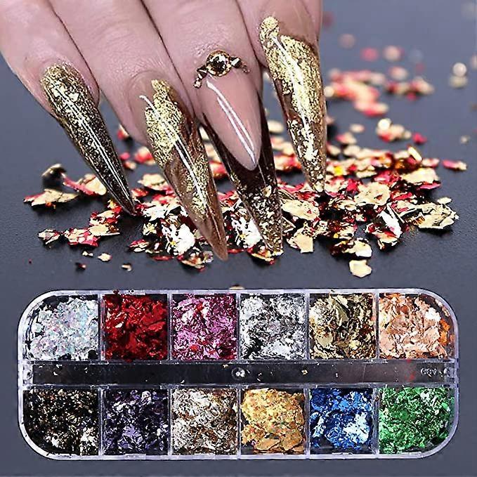 Dww-Chunky Glitter, Professional Nail Decoration 12 Grid Glitter Nail Gems Nail Art Glitter for Women Girls Nail Art Craft DIY