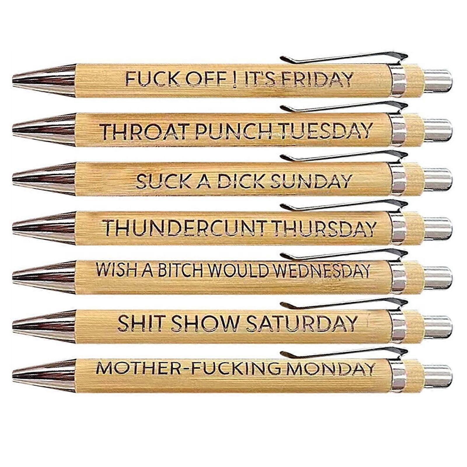 7Pcs/set Funny Swear Word Daily Pen Set, Wood Grain Ballpoint Pen Vent Your Emotions