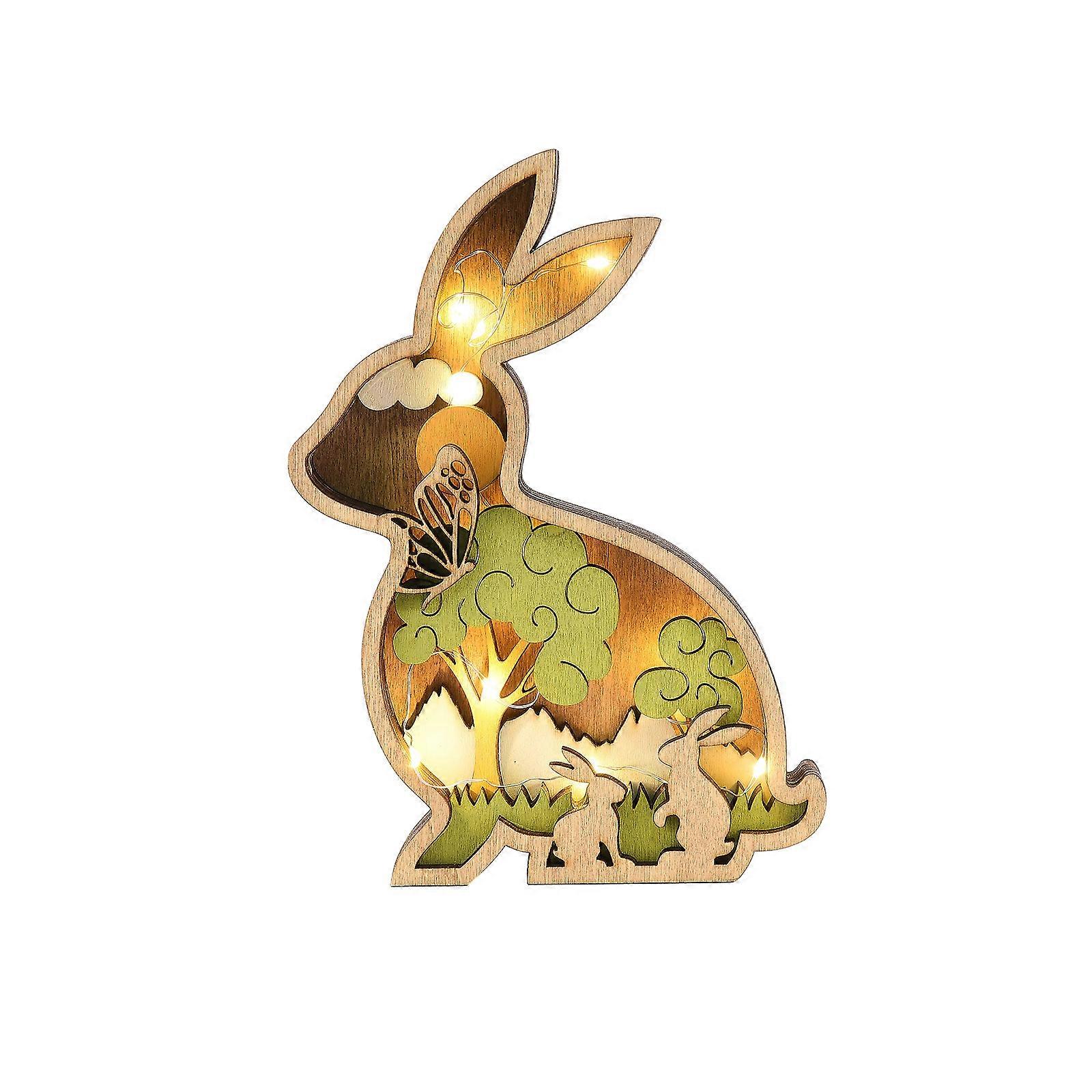 Wood carved ornaments Rabbit chicken butterfly Easter home decoration ornaments Year of the Rabbit ornaments