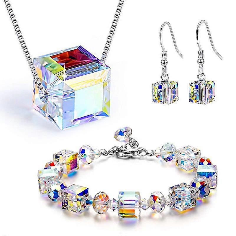 Square sugar crystal bracelet necklace earrings set female crystal bracelet