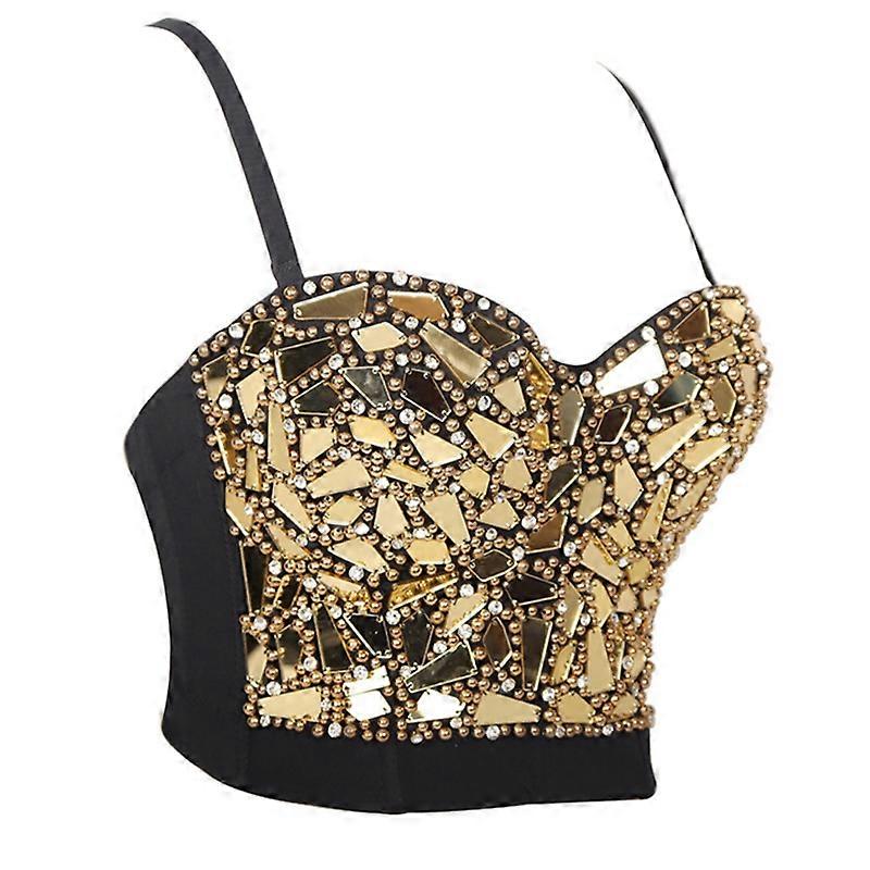 Womens Glitter Jewelry Bustier Bra Sexy Mirror Sequins Beaded Spaghetti Strap Push Up Corset Camisole Rave Sling Vest Dropship