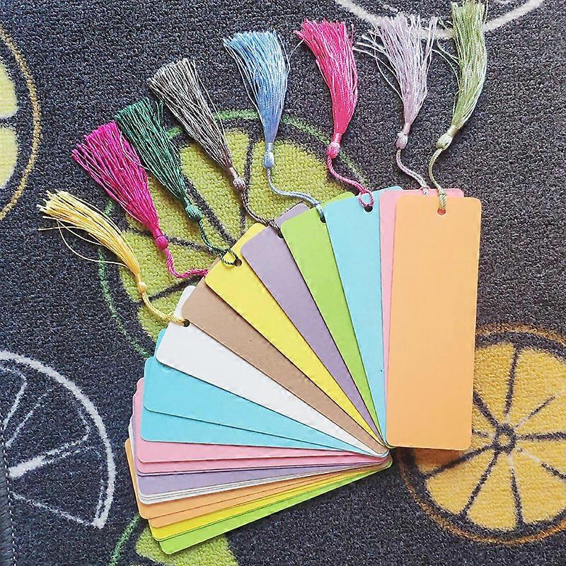 Dww-Set of 25 blank bookmarks, 15 x 5 cm, rectangular acrylic with 25 colorful tassels, transparent bookmarks for DIY projects, notebooks, gift tags