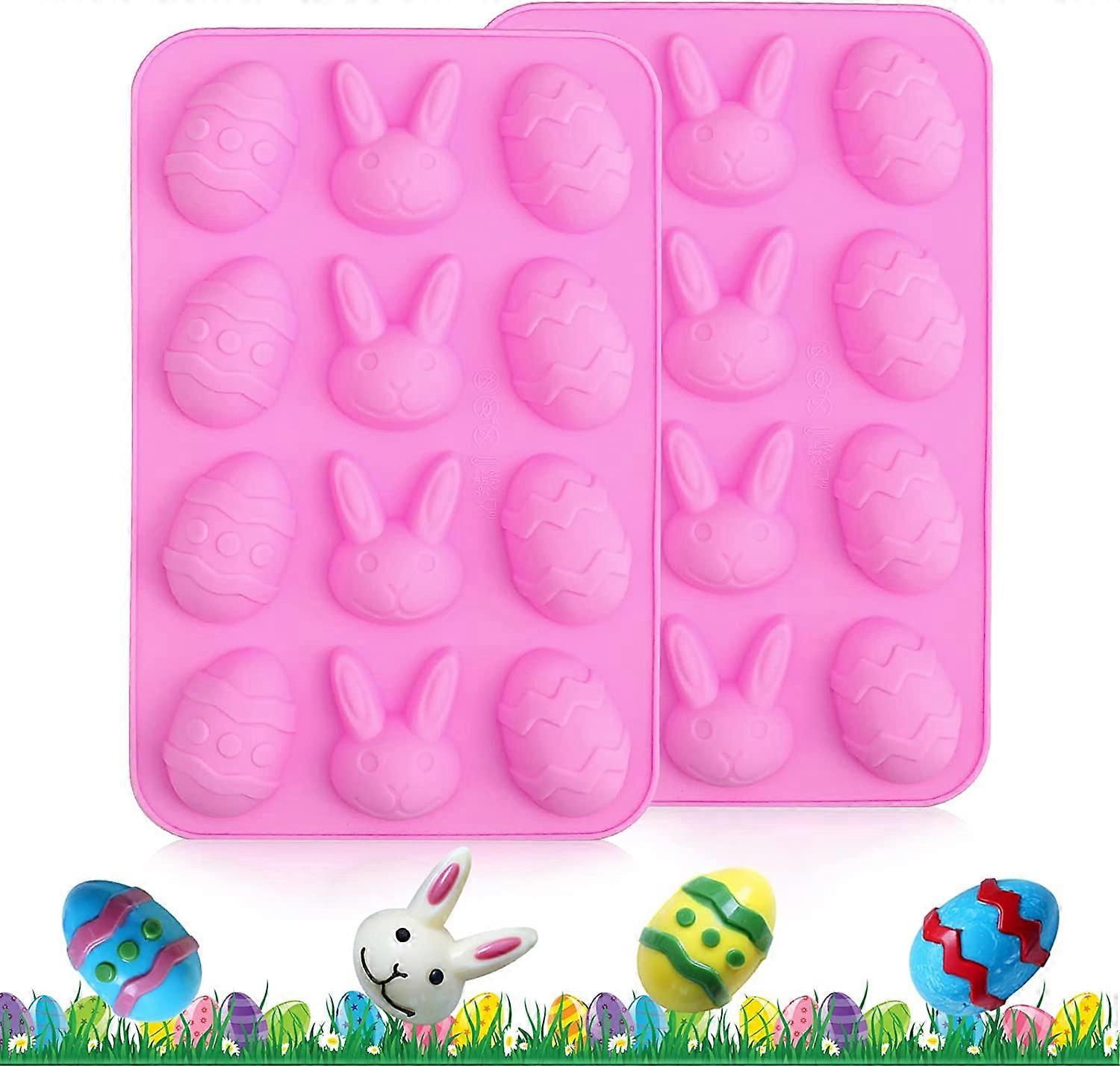 Dww-Rose- Easter Bunny Chocolate Mold, 2PCS Silicone Easter Egg Mold, 3D Silicone Chocolate Mold for Pastry