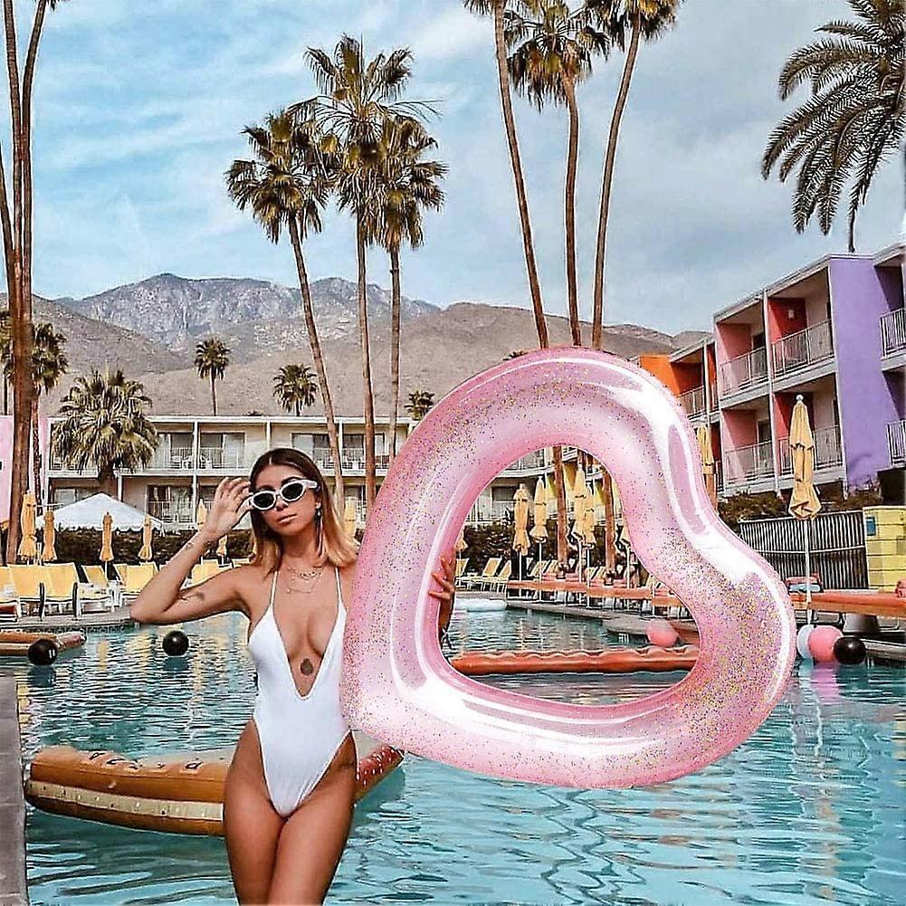 Dww Inflatable Float 47x47x6 inch, Pink Heart-Shaped Swimming Ring, Inflatable Raft Pool Float, Pool Toys for Adults