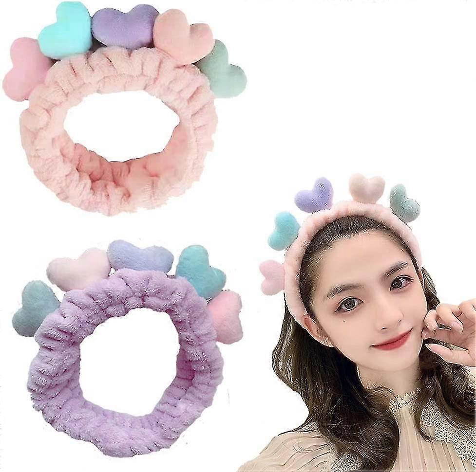 2 Pack Spa headband Makeup headband Coral velvet cute heart elastic head