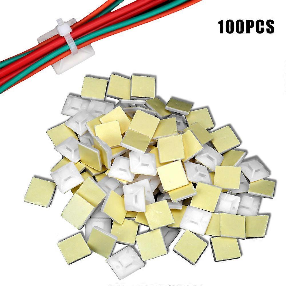 Cable Tie Base 2cm x 2cm Self Adhesive Zip Tie Mount Fixing Seat Clamps 100PCS Wire Wall Holder White
