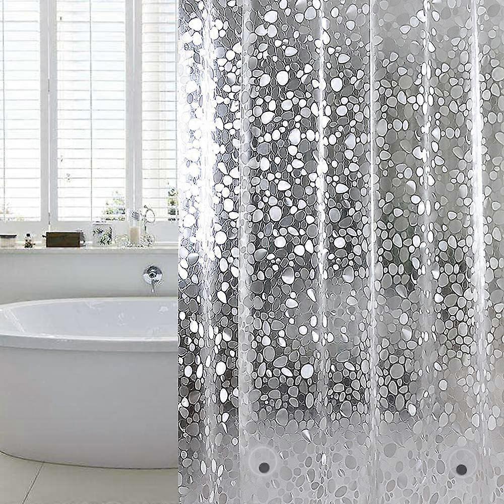 Dww-180 x 180 cm EVA Shower Curtain, Anti-Mold, Waterproof, with Pebble Eyelets and 12 Rustproof Hooks, Semi-Transparent Bathroom Curtain for Bathtub