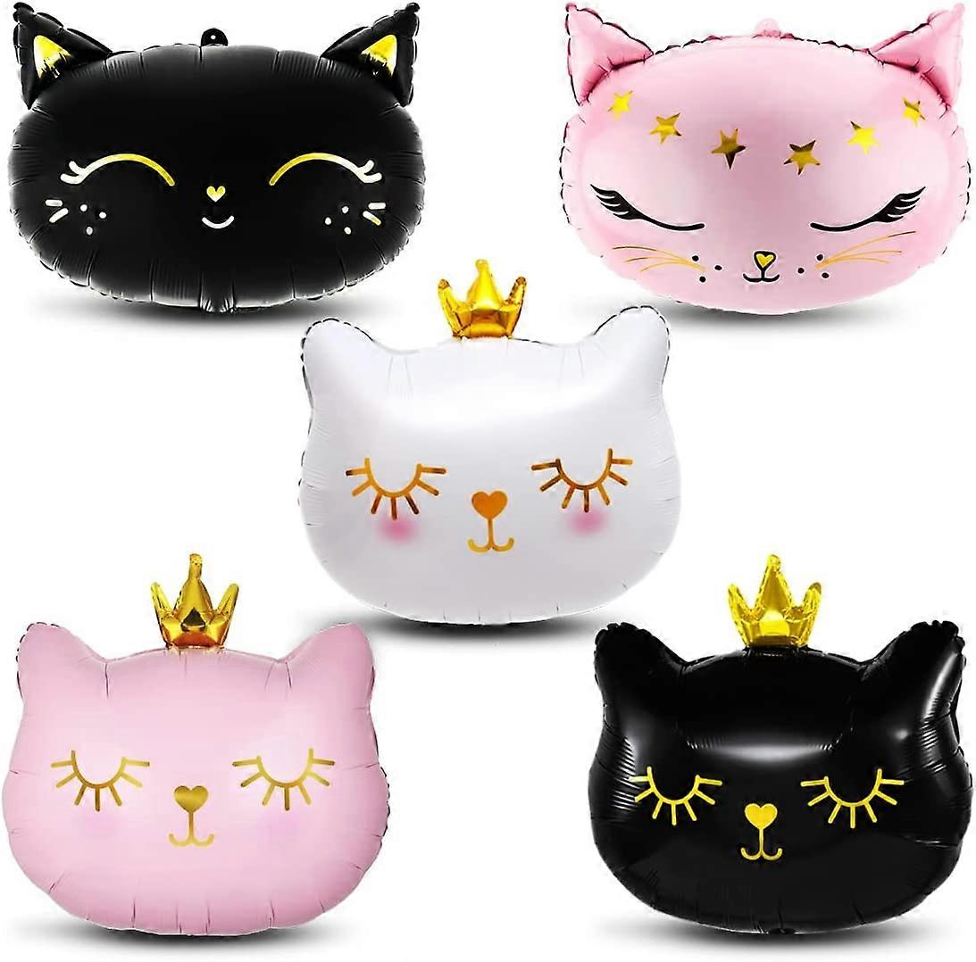 Dww-Cat Balloons, 5pcs Kitten Aluminum Balloons, Cat Head Shaped Balloon, Giant Cat Crown Aluminum Balloon for Weddings, Birthdays, Party Decorations,