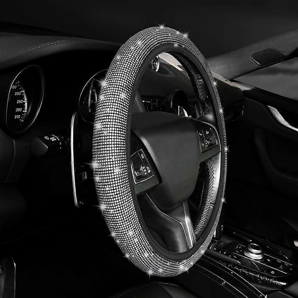 【HIGH-QUALITY MATERIALS】 This car steering wheel cover is made of selected high-quality, breathable materials and high-quality crystal diamonds. The diamonds embedded on the steering wheel resemble a starry sky. The diamond-shaped surface enhances the overall look of the cover, making your steering wheel more unique and brilliant. Heat-resistant, cold-resistant, wear-resistant, soft to the touch, breathable, and non-slip, it's both beautiful and practical, suitable for all seasons! 【PRACTICAL AESTHETICS】 This crystal car steering wheel cover emits colorful light when illuminated, adding a touch of luxury to your car's interior, enhancing its quality, and looking elegant and beautiful. This diamond steering wheel cover is a perfect gift for friends and family, especially women and girls. 【EASY TO INSTALL】 This steering wheel cover has excellent ductility; the inner ring is flexible and easy to install, and the cover can be easily installed without tools. Place the cover on top of the steering wheel, hold the top edge, and slide it directly onto the steering wheel with both hands to complete the installation. 【UNIVERSAL DIAMOND STEERING WHEEL COVER】 This car steering wheel cover fits most O-shaped and D-shaped steering wheels with a diameter of 36-38 cm (14.5-15 inches). The steering wheel cover has perfect elasticity and stitching to protect your steering wheel from scratches, fading, and abrasion. Please measure your steering wheel before purchasing. Note: It can be placed in a ventilated area to eliminate any unpleasant odors. 【COMPLETE PROTECTION】This crystal steering wheel cover is made of selected high-quality polyester fiber and crystal masonry, increasing palm friction for a better grip, improved control, and enhanced driving safety. Furthermore, the cover's moderate firmness allows you to massage your hands while driving, relieving fatigue without scratching them and providing a perfect feel.