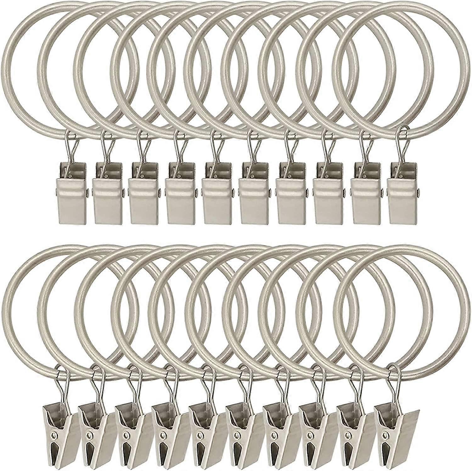 Dww-Lot of 30 (silver) decorative metal curtain rings in sturdy style with vintage rustproof clip, compatible with curtain rods up to 2.5 cm