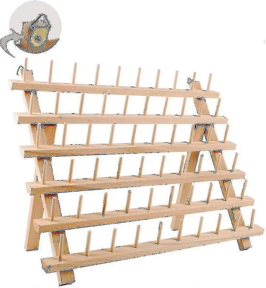 60-Spools Wooden Read Holder Sewing And Embroidery Read Rack And Organizer Read Rack Compatible With Sewing With Hanging Hooks