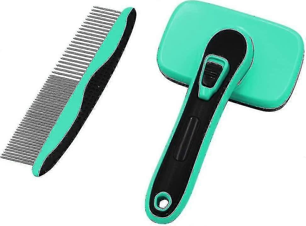 Grooming comb in stainless steel with different densities on the left and right side, wide teeth for back hair. Extra wide teeth to reach the bottom of the coat, more suitable for double back hair or long haired dogs. The ergonomic handle with non-slip rubber and thumb rest gives you great control and grip for long grooming sessions. When you're finished, simply press the button and the smooth pins retract into the tufts, all the hair stays on the flat surface and simply wipes clean - the whole process takes just 5 seconds. Comes with an easy to grip comb with fine polished stainless steel teeth for easy removal of debris for cats and dogs of all coat types, or as a grooming tool for delicate areas of hair. Effective at removing loose hair, undercoat, mats and knots, suitable for all sizes of dogs and cats and all coat types. Description:Grooming comb in stainless steel with different densities on the left and right side, wide teeth for back hair. Extra wide teeth to reach the bottom of the coat, more suitable for double back hair or long haired dogs. When you're finished, simply press the button and the smooth pins retract into the tufts, all the hair stays on the flat surface and simply wipes clean - the whole process takes just 5 seconds. Comes with an easy to grip comb with fine polished stainless steel teeth for easy removal of debris for cats and dogs of all coat types, or as a grooming tool for delicate areas of hair. The ergonomic handle with non-slip rubber and thumb rest gives you great control and grip for long grooming sessions. ColorBluePacking list. 1*Sticky bead brush1*Row combKindly notices:1. Please make sure your pet's coat is dry before grooming. 2. Grooming Order: move your brush gently along the direction of fur growth, from neck to shoulder, chest, waist, abdomen, rear quarters, head, the last are legs and tail.