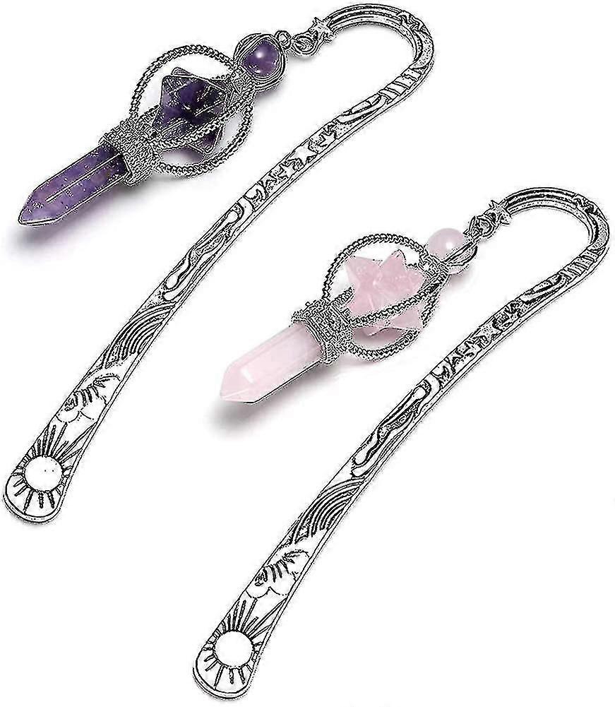 Vintage Silver Metal Bookmark with Amethyst Rose Quartz Crystal