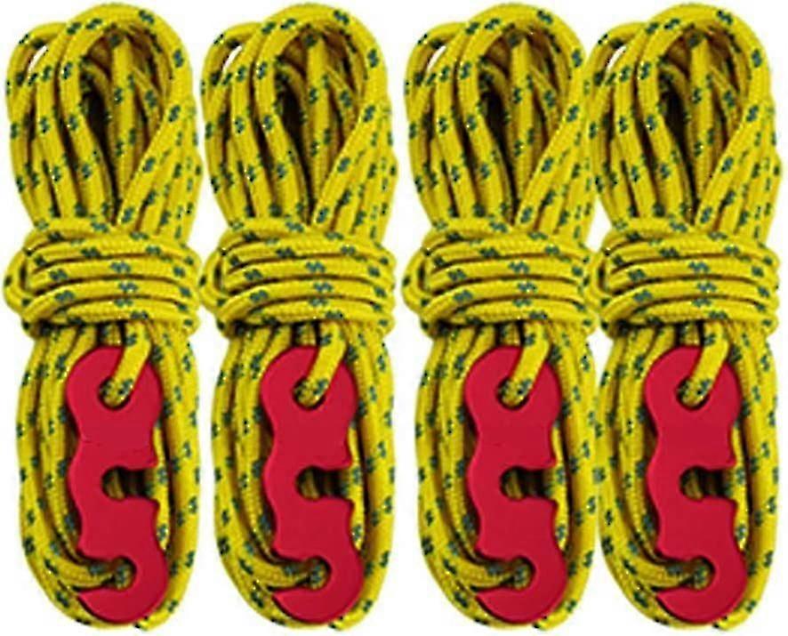 4-Pack 4mm Reflective Tent Guy Ropes with Aluminum Adjuster, Camping Tent Guide Lines, Yellow