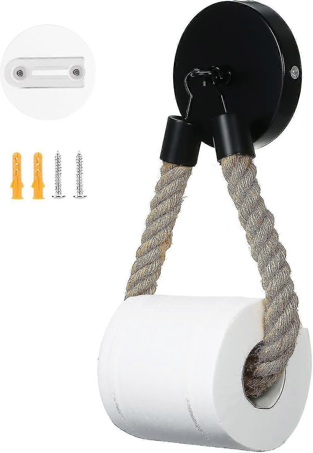 No-Drill Toilet Paper Holder Vintage Matte Black Wall-Mounted Bathroom Toilet Paper Rack
