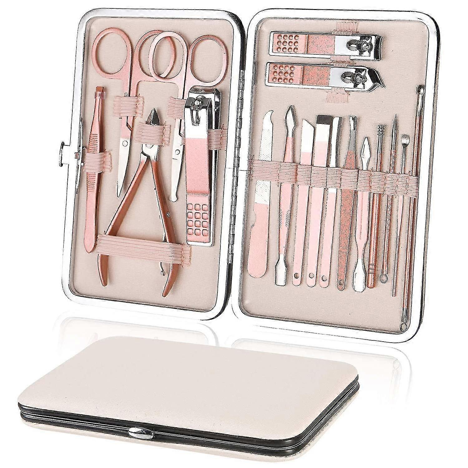 18 in 1 SatzManikre, Pedikre, Trimmen der Augenbrauen, Anti-Akne, Peeling usw. k?nnen Ihre Bedrfnisse auf einmal erfllen. Einschlie?lich Handpflege, Gesichtspflege und Fu?pflege. Alle Werkzeuge sind scharf und robust, leicht zu schneidende N?gel.Exquisite HandwerkskunstPedikre-Werkzeugsatz aus Edelstahl, mit hervorragender Verarbeitung, langlebig und korrosionsbest?ndig. Alle Werkzeuge wurden sorgf?ltig poliert und gesch?rft, gut verarbeitet und scharf genug, um Ihnen eine saubere und professionelle Nagelpflege zu bieten.TragbarDas Manikre-Set ist mit einem tragbaren Koffer ausgestattet, der per Knopfdruck leicht ge?ffnet werden kann. Es passt auf fast alle Arten von Taschen und kann unterwegs oder zu Hause mitgenommen werden.Fashion AppearanceDas rosafarbene Nagelknipser-Kit sieht hell und lebendig aus, mit hochwertiger PU-Lederstruktur und stilvollem Design. Kleines Paket, multifunktional, ideal fr Reisen und Familien.Perfektes Geschenk Professionelles Nagelknipser-Set ist die erste Wahl fr Menschen, die ein raffiniertes und qualitativ hochwertiges Leben suchen. Dies ist ein tolles Geschenk fr Weihnachten, Geburtstage, Jubil?en und Hochzeiten. Aknenadel: zum Entfernen von Mitessern oder AkneOhrst?psel: Zum Entfernen von Ohrenschmalz aus dem Geh?rgangAugenbrauenpinzette: Zum perfekten Formen der Augenbrauen durch Entfernen aller unerwnschten AugenbrauenAugenbrauenschere: Zum Schneiden von berschssigem Augenbrauenhaar Nagelreiniger: Zum Reinigen von N?gelnNagelfeile: um die N?gel glatt zu machen