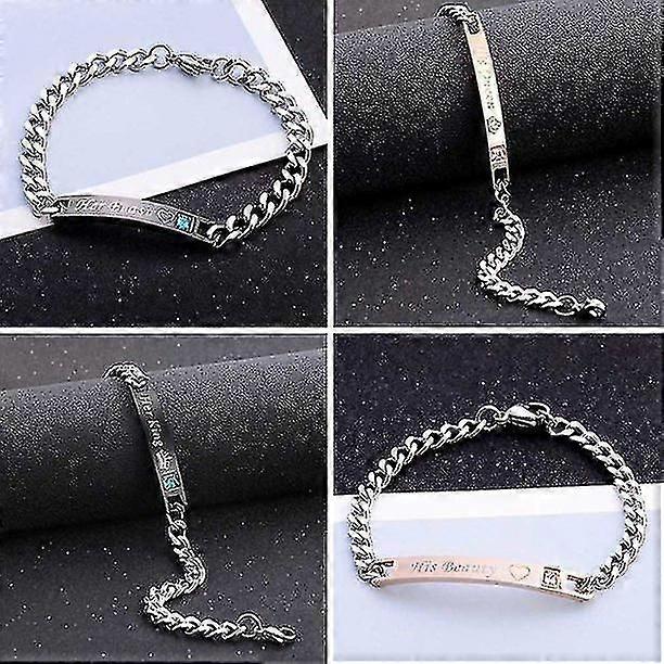 Diamond Couple Bracelet Set Stainless Steel Jewelry, Valentines Gift