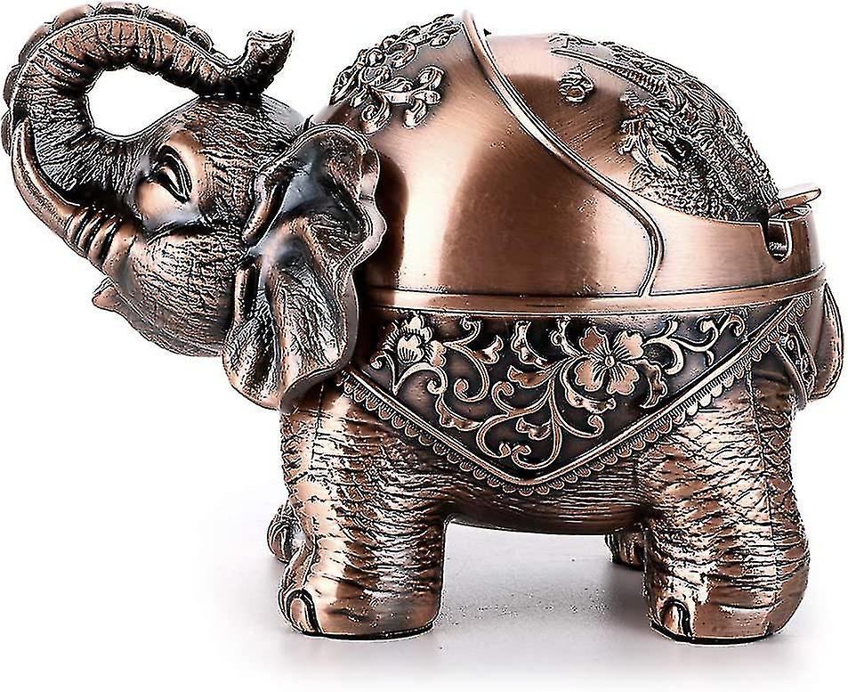Durable Quality - This vintage ashtray made of premium Zinc Alloy,long-lasting,anti-oxidize,rustless and it will never fade, sturdy and durable to use.advanced polishing treatment make the surface smooth,easy to cleanWindproof Design - This vintage ashtray is with a lid,when you want to throw cigarette butts into it, just pull it down, windproof semi-closed lid design to keep ashes from blowing out by the wind and less smoke circulating, thus keeping your place smelling fresher;There are three cigarette holder slots for smoking convenienceVintage and Exquisite Design - This windproof ashtray will brighten everyone's eyes and light up your place with retro colors and quaint rose embossing pattern.Lovely elephant shape design make looks more like a unique decoration,people don't even know it is a ashtray if you don't tell themMultipurpose - It is not only a practical ashtray, but also a decoration as a work of art, a eye-catching spotlight decoration for office, home, patio,restaurant, KTV, cafes, hotel,car and a creative gift for birthday, anniversaries, Christmas,New Year and Valentine's Day, or any gift giving occasionLarge Capacity and Nice Weight -This vintage ash holder size (L xWxH) is :6.1" x3.7"x 4.3" ,it can hold about 2 packets of cigarette ash,and it's heavy enough ,winds can not knock them over,so it's suit for outdoor use Dear customer, Thank you for choosing our products. If there is any problem with our products, please contact us through the order information. We will be happy to serve you and solve it for you as soon as possible within 12 hours, thank you