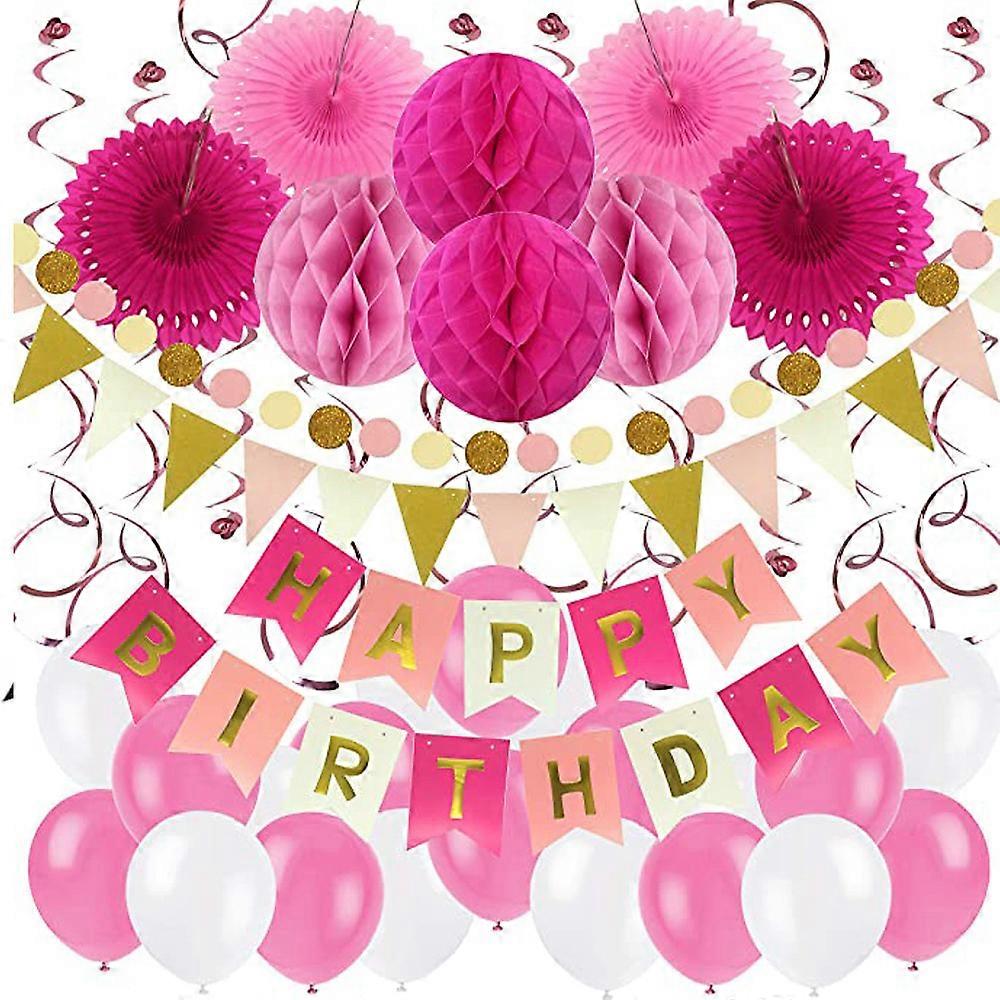 Dww-53PCS Birthday Decorations, Birthday Banner Party Decorations, 53pcs Happy Birthday Banner, Pom Poms, Triangle Banner, Garlands, Hanging Swirls an
