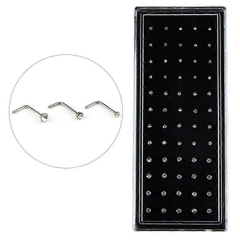 60PCS/Set Stainless Steel CZ Crystal L Shape Nose Ring Body Piercing Stud